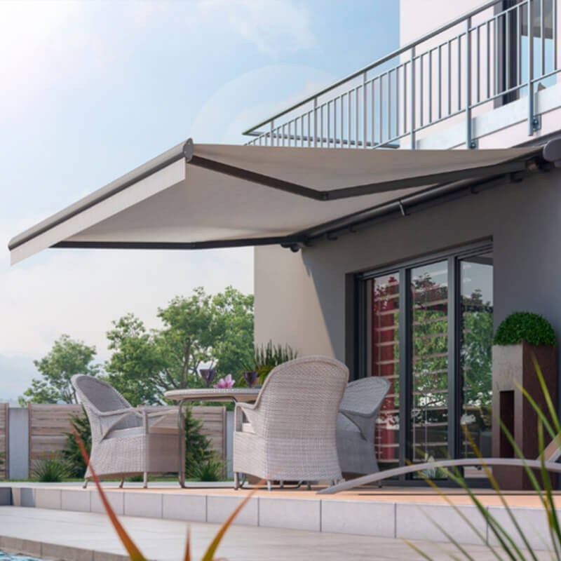 Praktisch, robust und stilvoll – die G250 Markise bietet Schutz und Komfort für jede Sonnensituation.